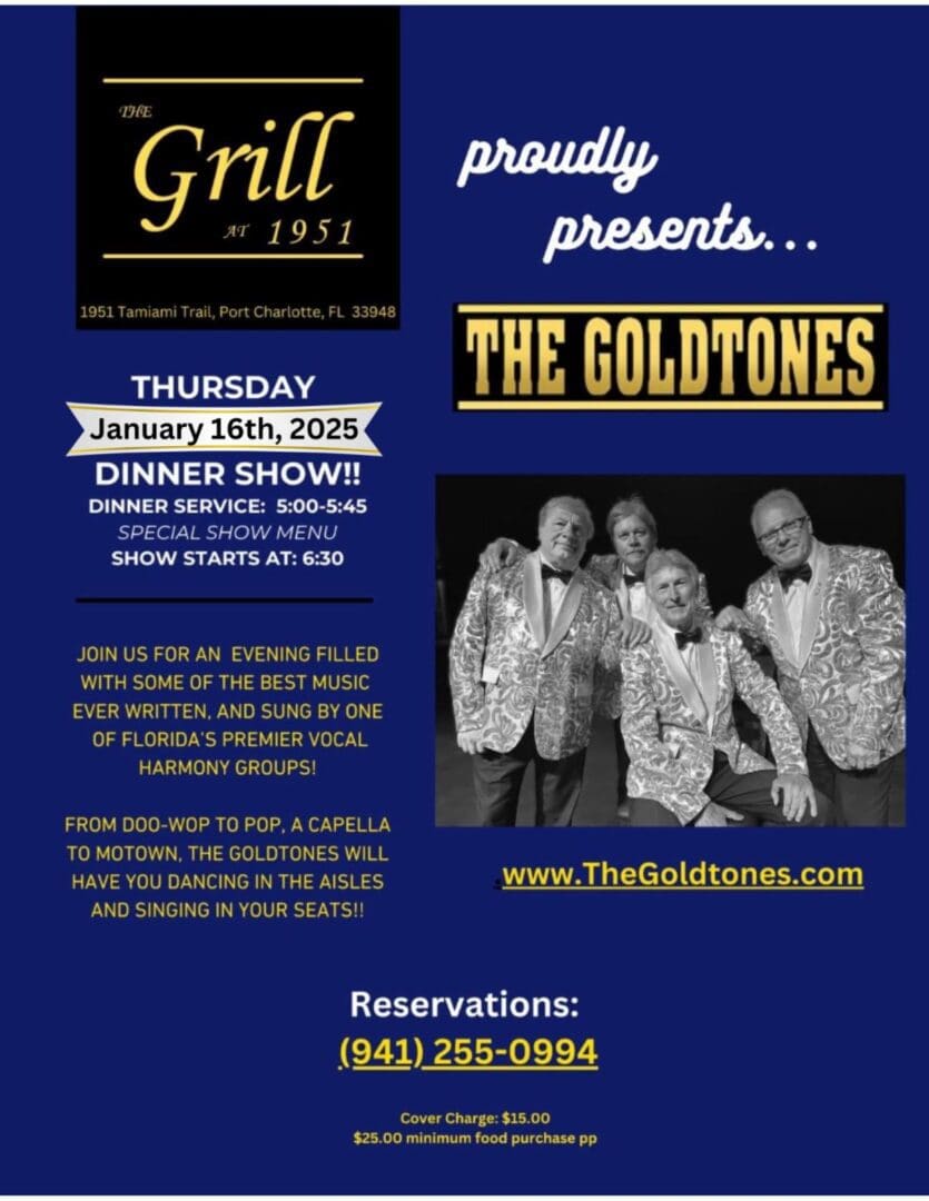 FROM DOO-WOP TO POP, A CAPELLA TO MOTOWN, THE GOLDTONES WILL HAVE YOU DANCING IN THE AISLES AND SINGING IN YOUR SEATS!!