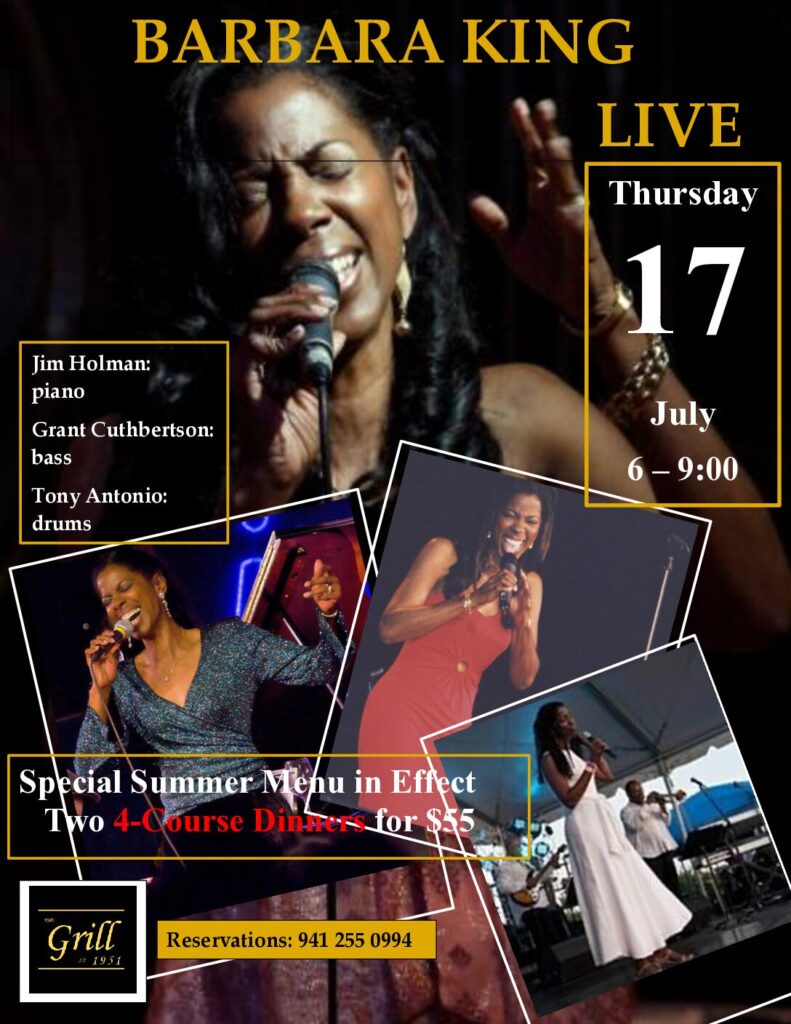 Barbara King Quartet Thursday July 17, 2025 6 – 9:00pm “Barbara King is the total body experience: the eyes close to allow your imagination to flow, the head bobs, the…